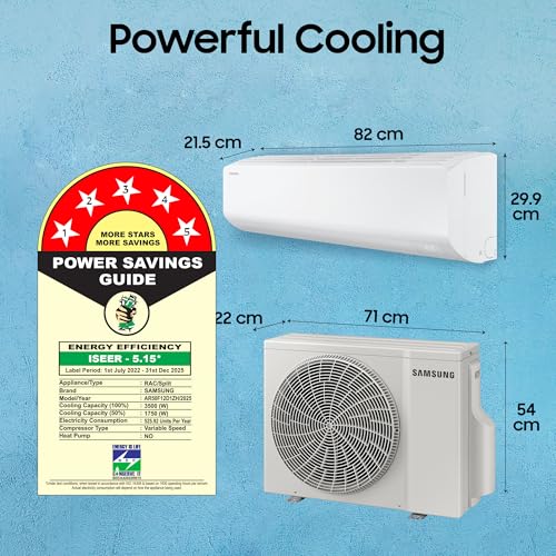 Specification: Samsung 1 Ton 5 Star AI Inverter Smart Split AC (WiFi, Convertible, BESPOKE AI AR50F12D1ZHNNA)