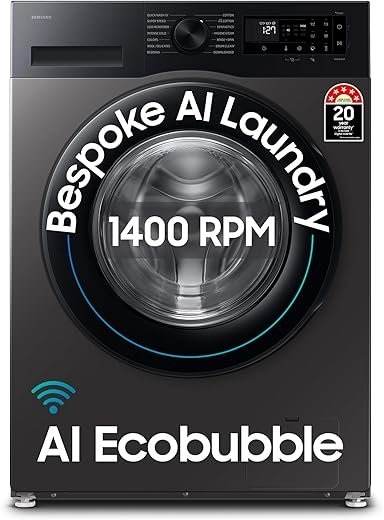 Specification: Samsung 9 kg, 5 star, Fully-Automatic Front Load Washing Machine, AI EcoBubble, Wi-Fi, Hygiene Steam, Inbuilt Heater, Digital Inverter (WW90DG5U24AXTL, Inox)
